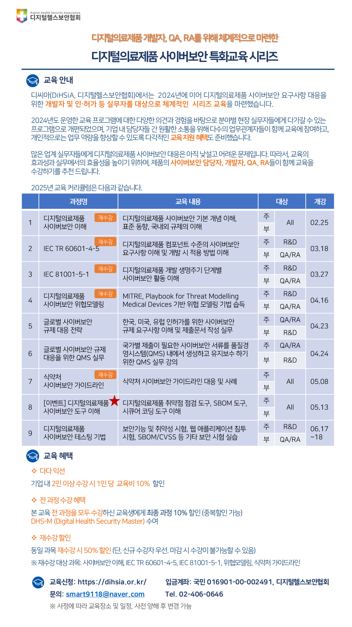 [교육] 디지털의료제품 사이버보안 특화교육 시리즈_의료기기 개발자 및 QA, RA 대상