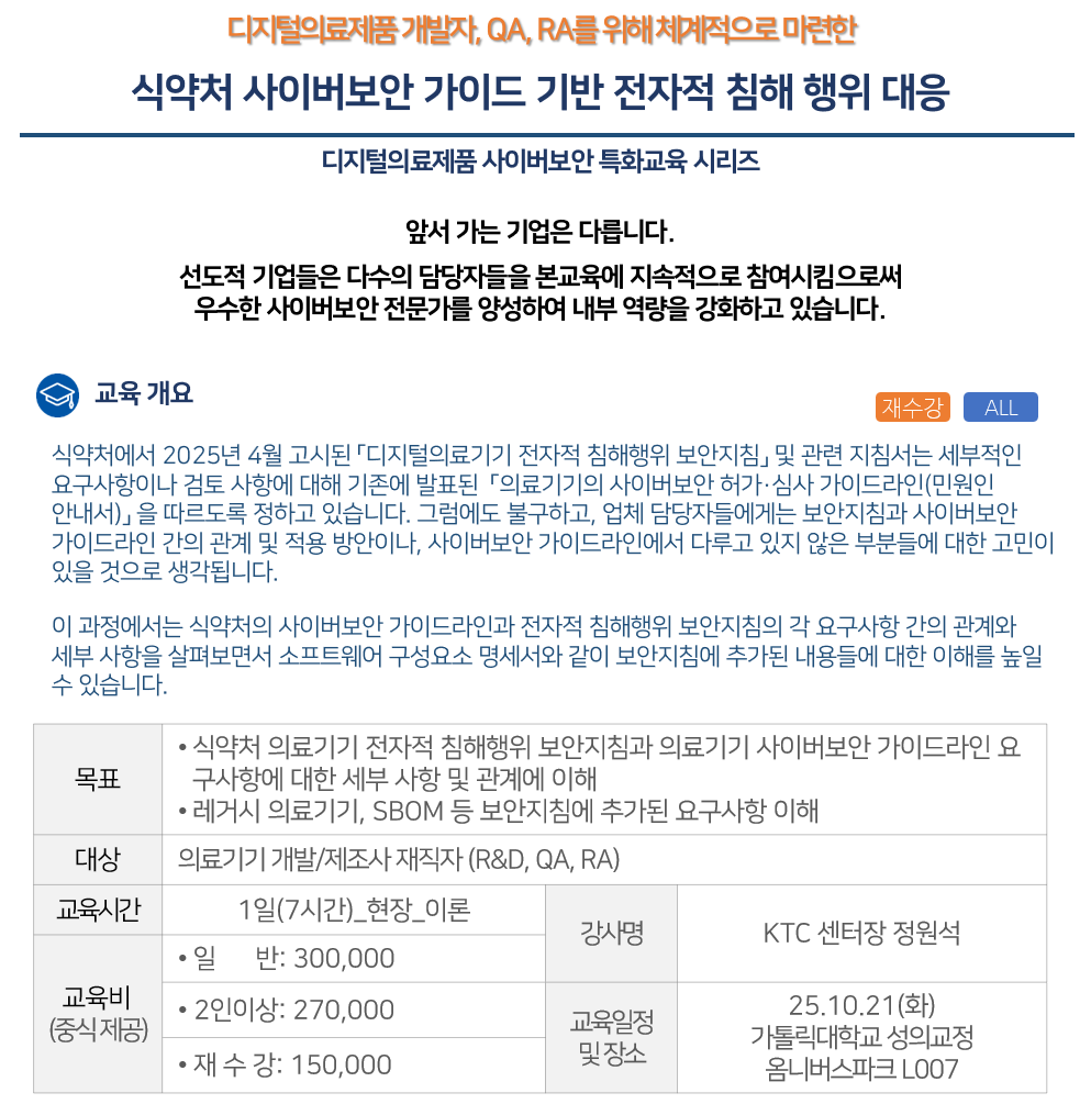 [교육] 식약처 사이버보안 가이드 기반 전자적 침해 행위 대응