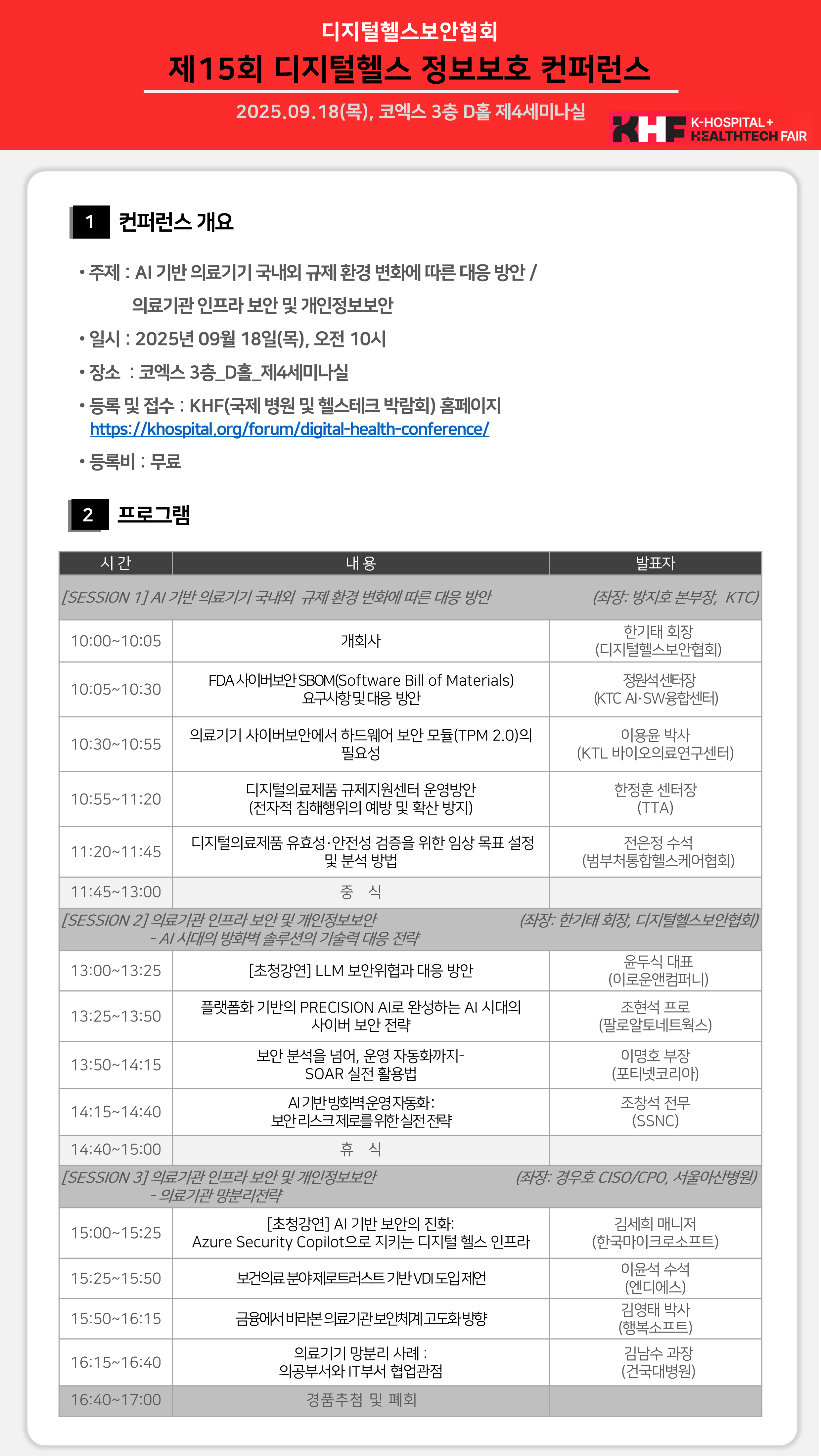 제15회 디지털헬스 정보보호 컨퍼런스 2025