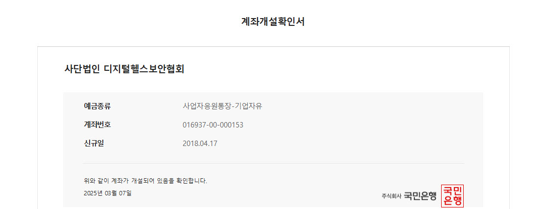 - 예금주 : 사단법인 디지털헬스보안협회